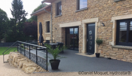 Hydrostar® est composé de gravillons de marbre, teintés naturellement et sans colorant, puis stabilisés grâce à une résine drainante translucide incolore. Hydrostar® peut s’envisager dans le cadre d’une rénovation sur une dalle béton, comme lors d’une réalisation sur un sol vierge.