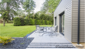 2ème conseil : le choix des matériaux ? dalles, gravillons lisses en fonction du sol, son nivellement, le budget et les goûts des propriétaires. Chez Daniel Moquet, le choix des pierres et celui des couleurs sont respectueux des codes locaux géographiques. Les pierres sont souvent extraites de carrières locales environnantes.