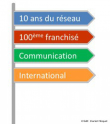 Tout d'abord, nous fêterons les 10 ans de la création de la franchise Daniel Moquet Signe Vos Allées. Dix ans d'existence et un beau rythme de croissance avec une moyenne de 10 ouvertures par an. 2014 sera également l'année du 100ème franchisé. En termes d'ouverture, les objectifs sont les mêmes que pour 2013 (entre 10 et 15). 9 franchises et 2 gérances sont déjà programmées pour le premier semestre. Daniel Moquet souhaite maintenir le "rythme de croisière" en termes d'ouvertures, "le but n'est pas d'avoir un maximum d'ouverture, mais de pouvoir accompagner chaque nouveau franchisé dans ses démarches pour aller vers la réussite".